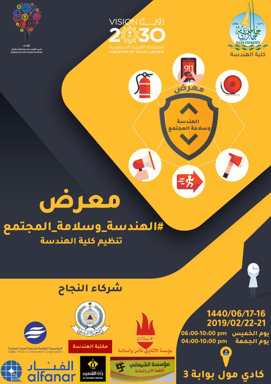 جامعة جازان On Twitter تنظم كلية الهندسة يومي الخميس والجمعة الموافق 21 22 2 2019 معرض الهندسة وسلامة المجتمع بمجمع كادي مول بوابة 3 ويهدف المعرض لتوعية أفراد المجتمع بوسائل السلامة من الحرائق الكهربائية وكيفية التعامل مع الحرائق المنزلية وكيفية استخدام