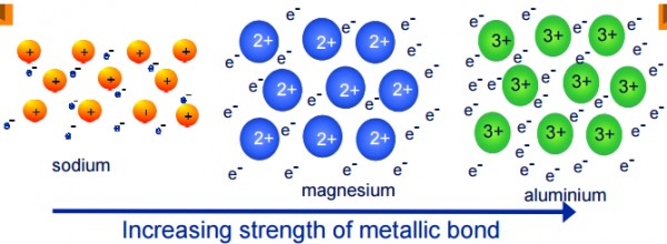 7 الرابطة الفلزية بين ذرات 13 al أقوى من الرابطة الفلزية بين ذرات 11na.