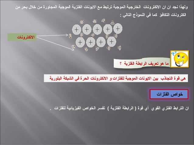 الرابطة الفلزية وكيفية تكوينها. 9 للفلزات القدرة على توصيل التيار الكهربي.
