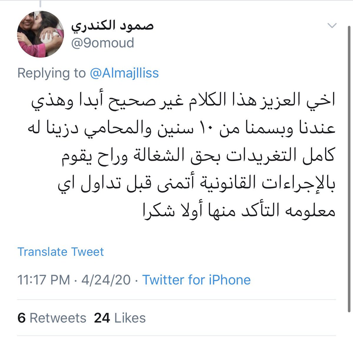 عبدالعزيز اليحيىさんのツイート بوسمير الله يهداه مسح التغريدة وسكر اكاونته وخلى الشعب كله يعتقد انه العاملة المنزلية على إقامته وطلعت صمود الكندري وجذبت الخبر وبترفع قضية ياريت الاخت اللي سوت تجمع بالمنصورية تسوي