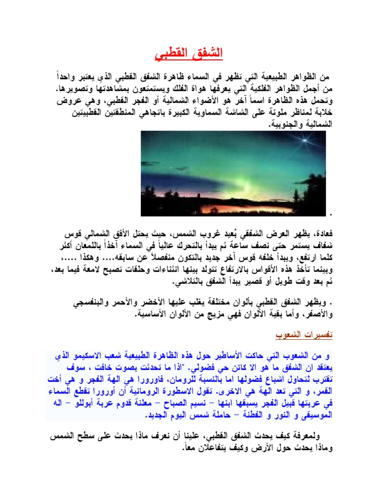 معلومات عن ظاهرة الشفق القطبي موضوع