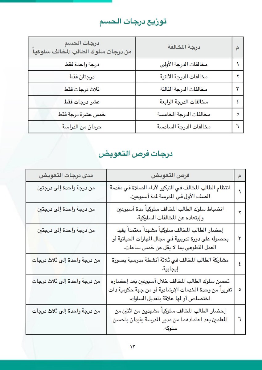 وكالة تعليق الدراسة No Twitter توزيع درجات الحسم ودرجات فرص التعويض ودرجة المخالفات اقرأ جيدا حتى لا تتعرض للحرمان من الدراسة وزارة التعليم