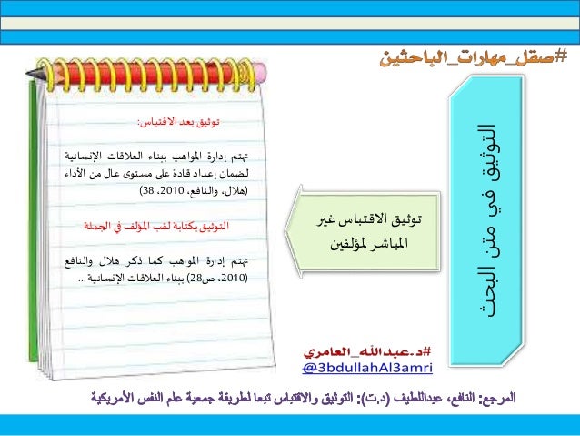Ppt توثيق المراجع طبقا لطريقة جمعية علم النفس الأمريكية Apa Powerpoint Presentation Id 2039462