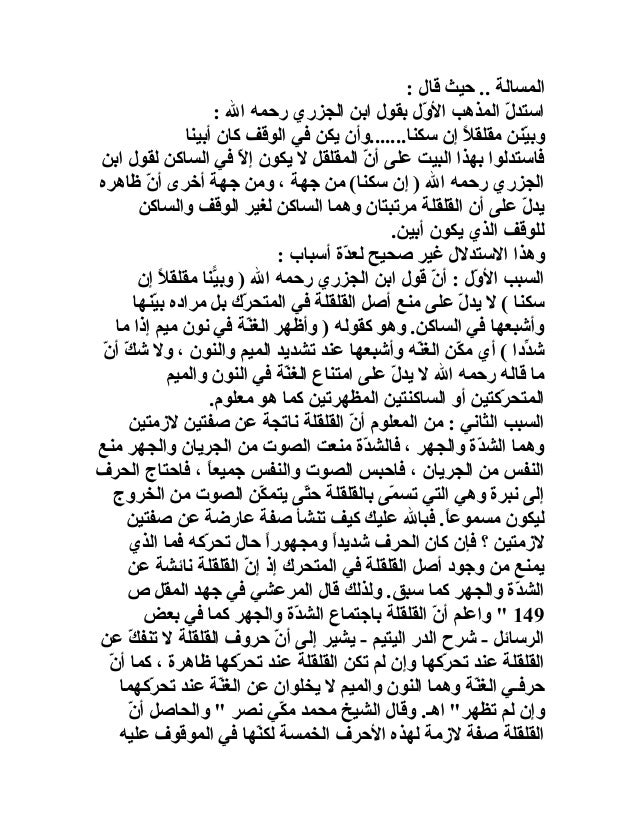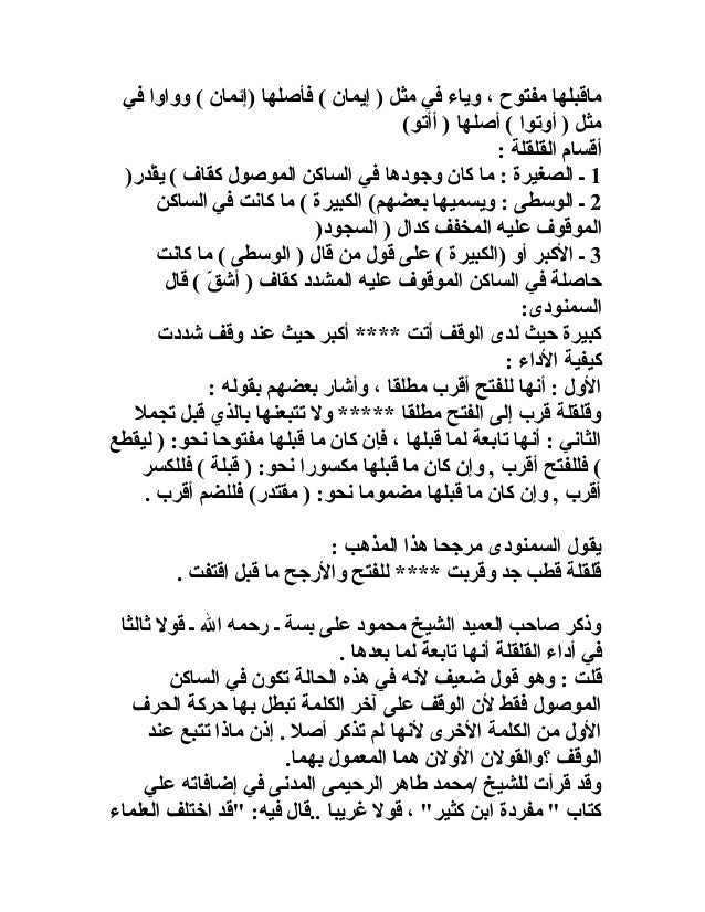 المذاهب المذكورة فيه كيفية القلقلة