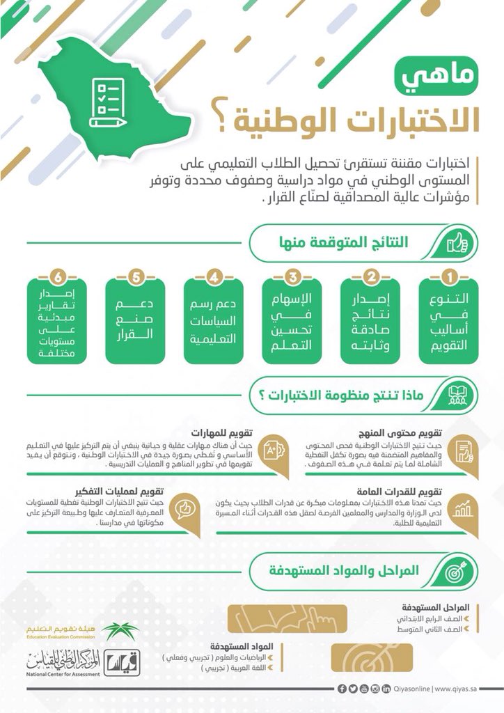 مركز قياس Qiyas On Twitter تهدف الاختبارات الوطنية إلى تزويد صانع القرار بقياس صادق وموثوق وقابل للمقارنة عن مدى إتقان الطلاب والطالبات على المستوى الوطني للمهارات والمعارف اللازمة بما في ذلك مستويات