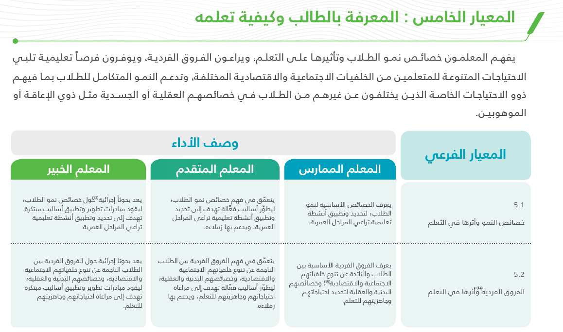 Muna Alghamdi On Twitter موجودة حبيبتي بالتفصيل مثلا عندك المعيار الأول المعرفة بالطالب و كيفية تعلمه يجيك تحت هذا المعيار معايير فرعية مفصلة Https T Co Upc8u86nzc
