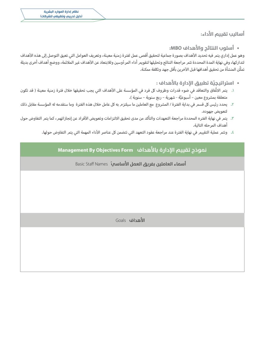 O Xrhsths م أحمد الزهراني Sto Twitter من أساليب تقييم الأداء أسلوب تقييم الإدارة بالأهداف وفيه يتم وضع أهداف الإدارة وكيفية تحقيقها وفي نهاية الفترة يتم مراجعة الأهداف والتأكد من مدى تحققها لإجراء