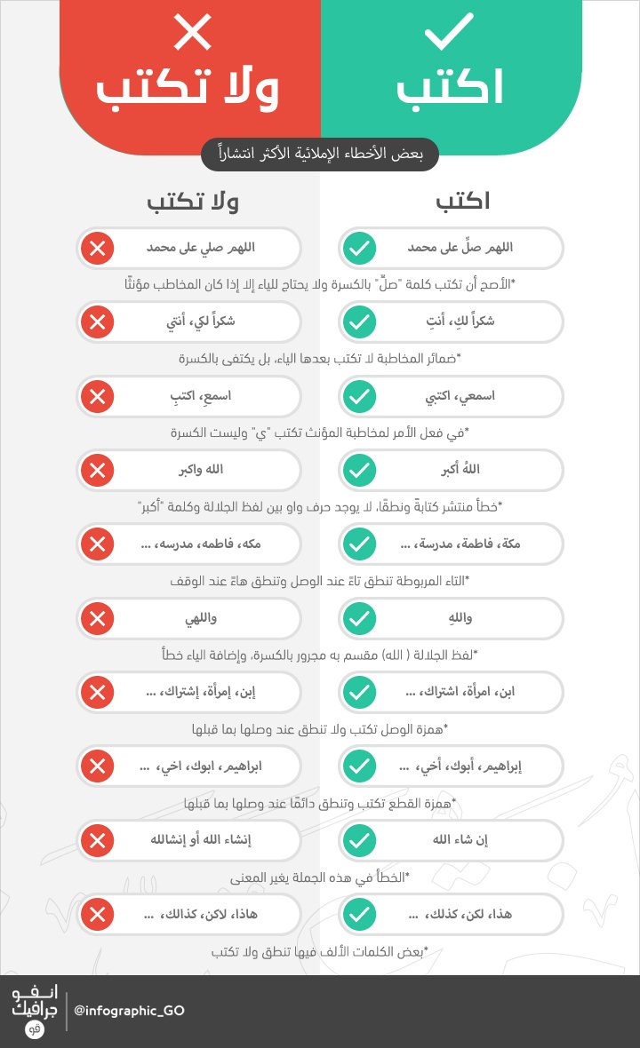 انفوجرافيك قو On Twitter اكتب ولا تكتب بعض الأخطاء الإملائية الأكثر انتشارا لغة عربية انفوجرافيك