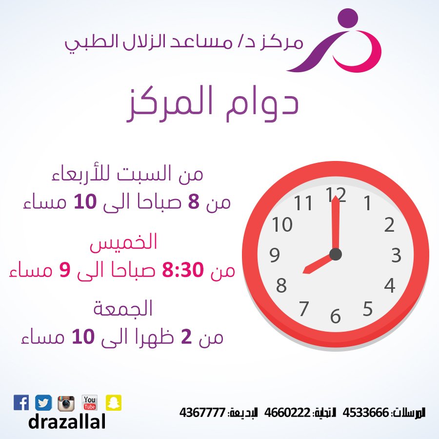 مركز د مساعد الزلال Sur Twitter اوقات دوام مركز الزلال الطبي مركز الزلال الرياض