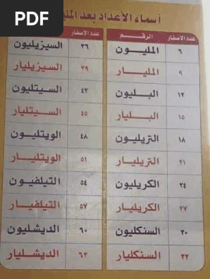 أسماء الأعداد بعد المليون عدد الأصفار6 Ibnbatouta كتاب و معلومة للجميع Facebook