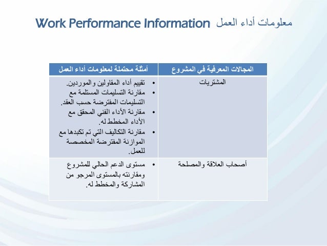 بيانات ومعلومات وتقارير أداء عمل المشروع Project Work Performance Da