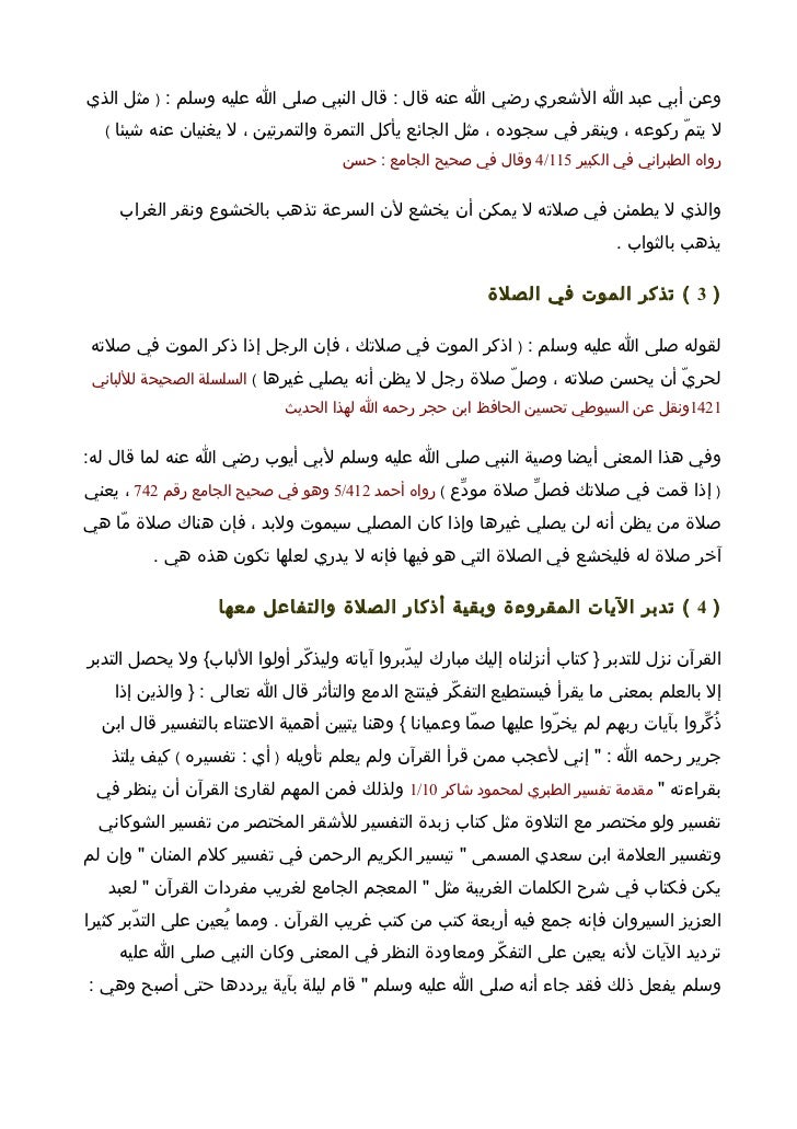 الخشوع في الصلاة حقيقته و أسبابه منارات للعلوم الشرعية والدعوية